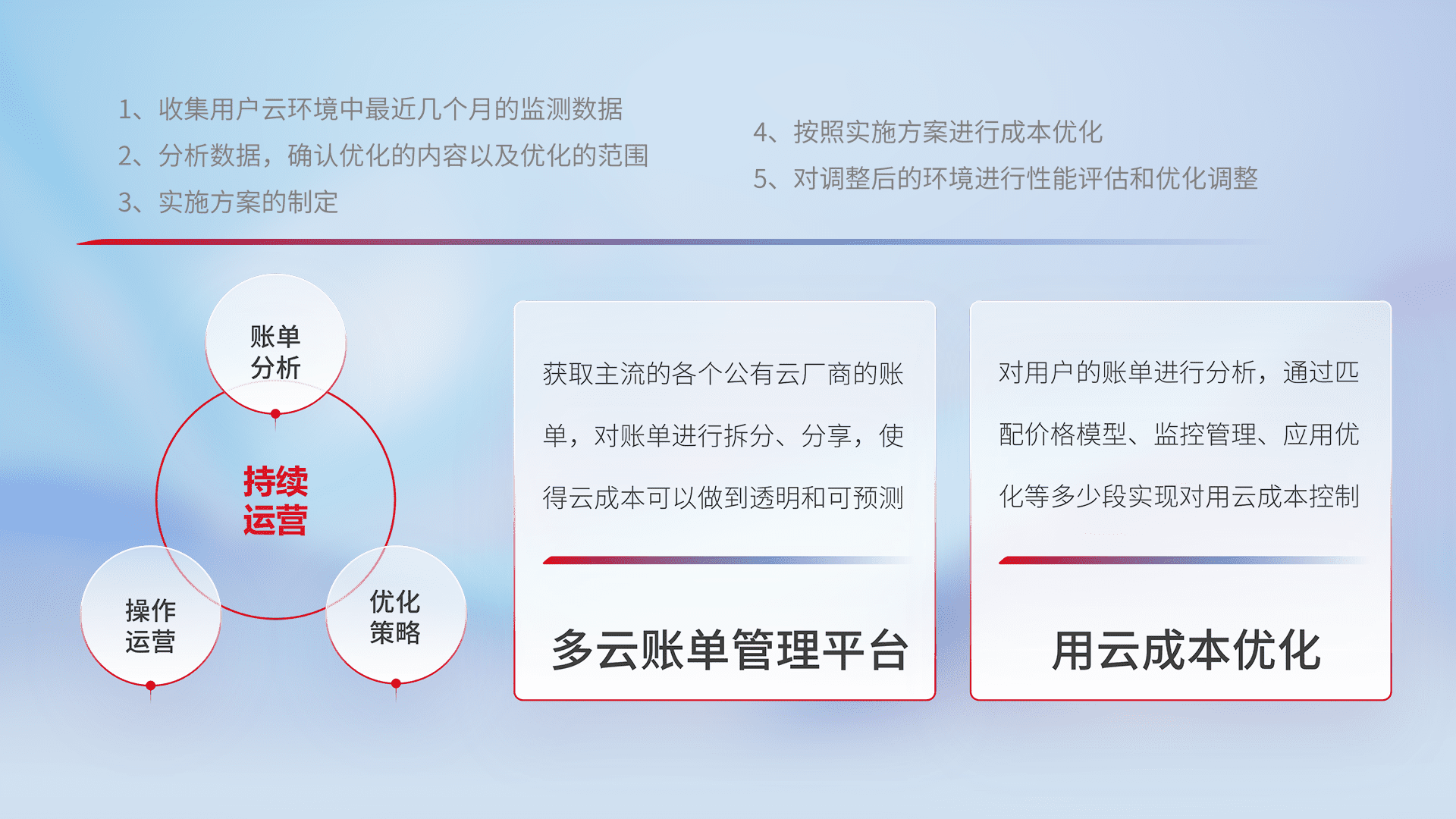 监控业务系统资源开销,,,,对资源的消耗精确计量,,实现费用的透明化管理,,,,不断提升资源使用率,,,调整资源购买方式,,,,降低资源费用成本,,用云成本可预测、、、、用云费用可优化,,,云资源配额有据可依。。。